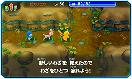戦いに勝つとポケモンは「けいけんち」がもらえ、「けいけんち」が一定のレベルに達するとレベルがあがります。レベルが上がると新しいわざをおぼえることがあります。