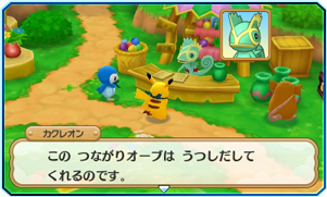 「つながりオーブ」には、それまで主人公が出会ったポケモンや、つながりを持っているポケモンがうつしだされる。「つながりオーブ」に見えるポケモンの中には、悩みやお願いをつぶやいているものが…悩みやお願いを解決すると、そのポケモンから感謝され、仲間になってくれます。