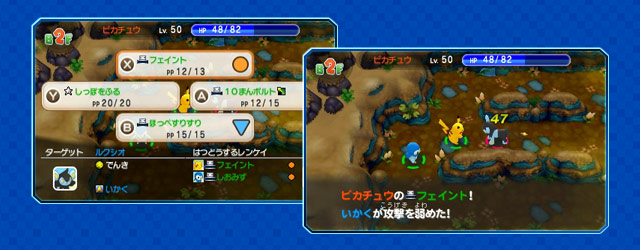 ダンジョンの中にはいろいろな敵ポケモンがいます。敵ポケモンは主人公を見つけると襲いかかってくるので、仲間と協力して戦いに挑みます。
