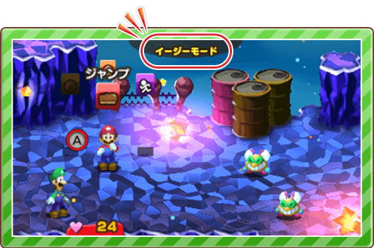 イージーモード 全滅しても大丈夫!マリオたちがパワーアップした状態でバトルをやりなおせるモードも!