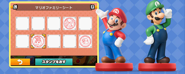 クリボー、ノコノコ、テレサのほかにもマリオたちのamiiboでもスタンプがおせる!