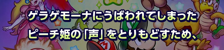 ゲラゲモーナにうばわれてしまったピーチ姫の「声」をとりもどすため、