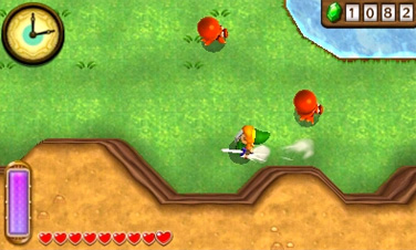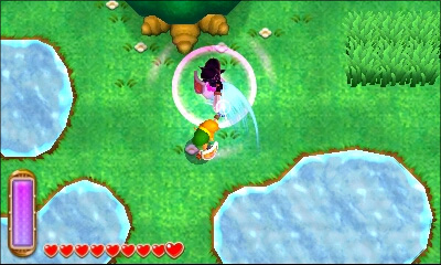 別のプレイヤーとすれちがい通信を行うと、そのプレイヤーが「シャドウリンク」としてやってきます。 「シャドウリンク」に話しかけると、バトルがスタート。 見事勝利すると、賞金としてたっぷりルピーが手に入ります。