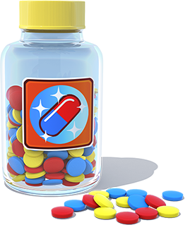 特効薬とは・・・ ビンの横にあるゲージがたまるとカプセルの代わりにランダムで出現するお助けアイテムのことです。