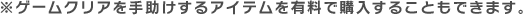 | ● 価格 | :基本プレイ無料(アイテム課金あり) ※ゲームクリアに必須のアイテムはありません |
