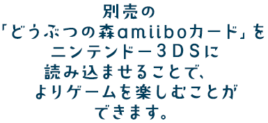 ※「『とびだせ どうぶつの森 amiibo+』amiiboカード」および「『とびだせ どうぶつの森 amiibo+』amiiboカード 【サンリオキャラクターズコラボ】」は対応しておりません。