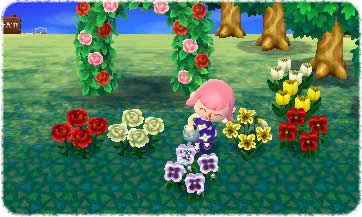 【植物のお世話】お花のタネや木の苗を植えたり、お水をあげたり、村の好きな場所でガーデニングをマンキツ。大事に大事に育ててみれば、めずらしい色のお花が咲くことも。