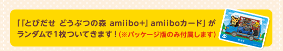 「『とびだせ どうぶつの森 amiibo+』amiiboカード」がランダムで1枚ついてきます!(※パッケージ版のみ付属します)