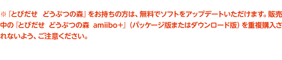 いただけます。販売中の『とびだせ どうぶつの森 amiibo+』(パッケージ版またはダウンロード版)を重複購入されないよう、ご注意ください。