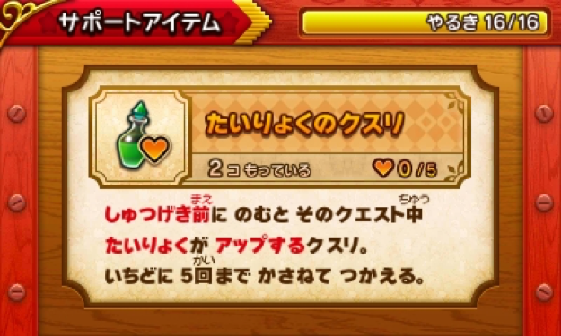 サポートアイテムっていうんダケド、コレを使えばクエストを