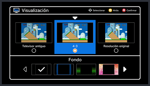 | 4:3 | Cambia la visualización al formato original 4:3 del juego. |