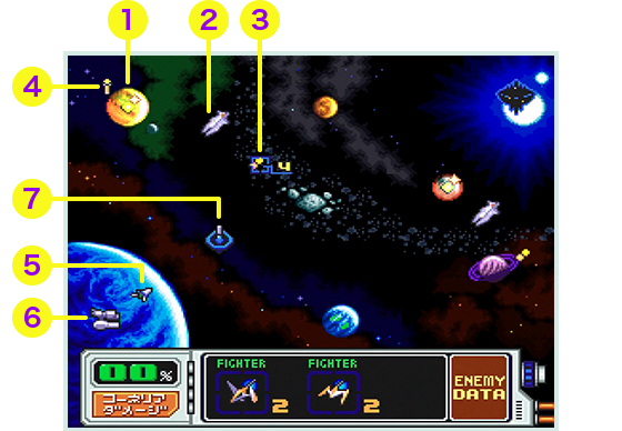 サテライト・システム· 敵小隊などにカーソルを合わせると、機種や数が表示されます。