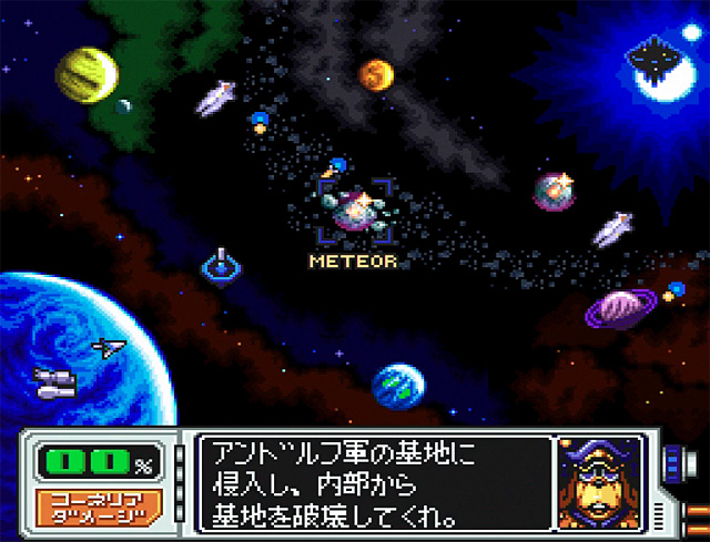 ライラット系の状況がわかります。十字ボタンでカーソルを動かしてBボタンを押すと、カーソルの場所までアーウィンが移動します。このとき十字ボタンやBボタンを押し直すと、目的地を変更できます。アーウィンと敵は同時に動き、お互いが重なると戦闘画面に切り替わります。