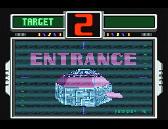 Sur cet écran, le nombre d'ennemis restants est indiqué sous TARGET (cible). Lorsque vous vous trouvez sur une planète, les forteresses qui abritent un réacteur et les interrupteurs qui font apparaître ces forteresses sont inclus dans ce nombre, ainsi que d'autres éléments.