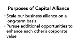 There are a few other reasons why we also entered into a capital alliance. We want to scale our business alliance on a long-term basis rather than short. Additionally, we plan to pursue other opportunities to enhance both companies’ corporate value without limiting our joint efforts just to the new alliance. So please stay tuned to both companies for more news in the future.