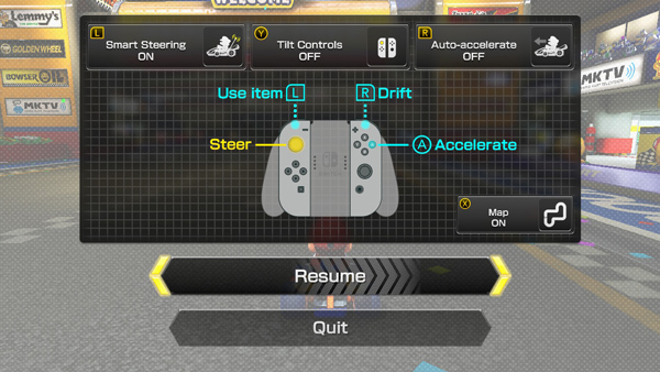 A feature called “Smart Steering” can be used in Mario Kart 8 Deluxe, a game on Nintendo Switch. This optional feature provides automatic steering assistance so that your kart will not stray off the course during a race. In ways like this, we work so that various consumers, including those without much previous gaming experience, can enjoy our game software.