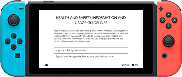 Users of the Nintendo Switch family of systems (Nintendo Switch, Nintendo Switch – OLED Model and Nintendo Switch Lite) can access “Health and Safety Information and Usage Guidelines” from the System Settings menu. It summarizes information for safely using the gaming systems, which can also be viewed online.