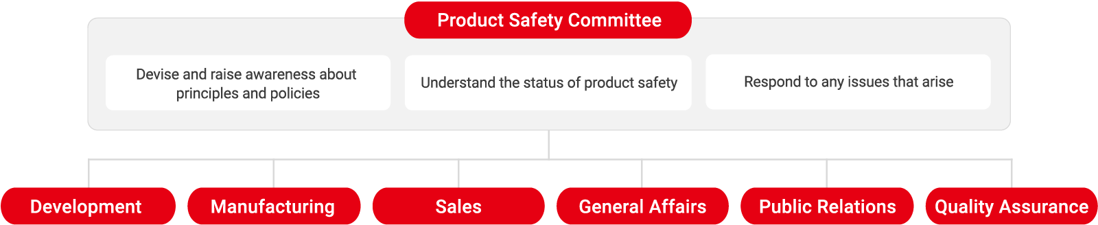 Before the start of production, products must pass a review by the Design Safety Review Committee, which is made up of members appointed from multiple departments. The committee evaluates at the design stage whether product safety has been achieved from a perspective separate from that of the development divisions.