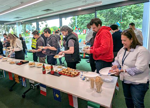 任天堂オーストラリアには、さまざまな文化的背景を持つ社員がいます。多くの文化で食が中心的な位置を占めるという認識から、社員が交流しながら民族や文化の多様性について学び、認識できるよう2024年10月に食の文化的多様性に関するランチイベントを開催しました。それぞれの文化を代表する料理を持ち寄り、13カ国29種類の料理を楽しみました。
