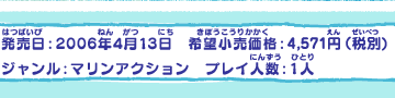 マーメイド 発売日:2006年4月13日 希望小売価格:4,571円(税別) ジャンル:マリンアクション プレイ人数:1人 ニンテンドーDS