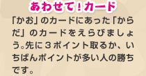 あわせて!カード:「かお」のカードにあった「からだ」のカードをえらびましょう。先に3ポイント取るか、いちばんポイントが多い人の勝ちです。