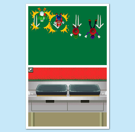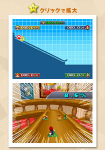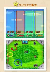 かこんでクリボー:タッチペンでクリボーをかこんでつかまえましょう。ふつうのクリボーは1ポイント、金のクリボーは3ポイントです。
