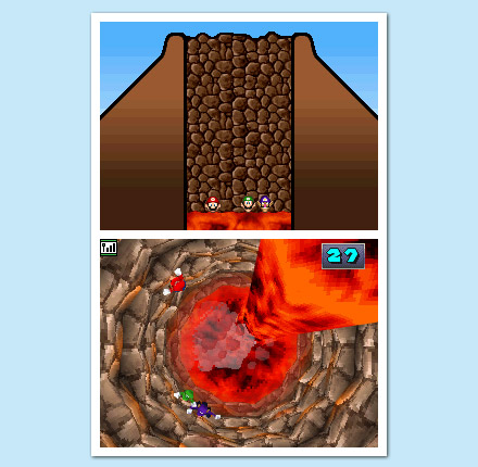 マグマでデンジャラス:せまりくるマグマを左右によけましょう。制限時間をにげきるか最後の1人になると勝ちです。