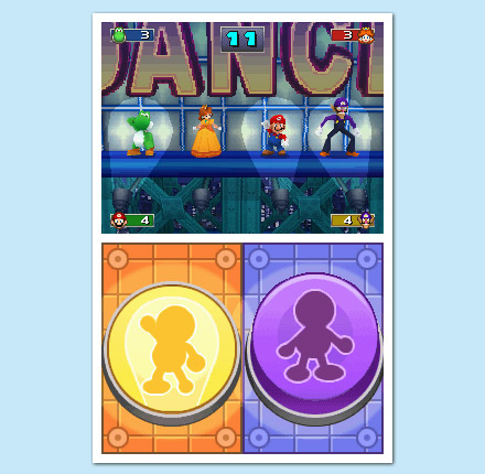 マリオパーティDSには、60種類以上の新作ミニゲームが登場します。ミニゲームを遊ぶことができる「ミニゲームモード」では、「ストーリーモード」や「パーティモード」などで遊んだことのあるミニゲームが登場します。