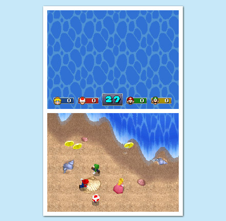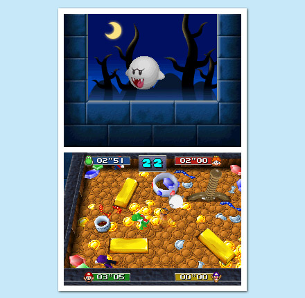 マリオパーティDSには、60種類以上の新作ミニゲームが登場します。ミニゲームを遊ぶことができる「ミニゲームモード」では、「ストーリーモード」や「パーティモード」などで遊んだことのあるミニゲームが登場します。