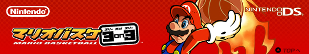 「マリオバスケ3on3」は、十字ボタンで移動しながらタッチスクリーンでボールを直感的に操ることができる、まったく新しいバスケットボールゲーム。コインやアイテムを駆使しながら、それぞれのキャラクターが持つ"スペシャルショット"を豪快に決めて攻めまくれ!