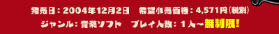 発売日:2004年12月2日 希望小売価格:4,571円(税別) ジャンル:音楽ソフト プレイ人数:1人〜無制限!