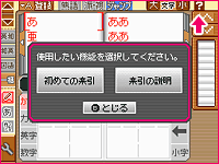 「初めての楽引」ではDS楽引辞典の使い方の基本を、検索の流れに沿って体験できます。