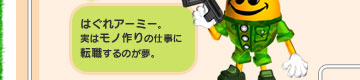はぐれアーミー。実はモノ作りの仕事に転職するのが夢。