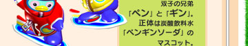 双子の兄弟「ペン」と「ギン」。正体は炭酸飲料水「ペンギンソーダ」のマスコット。