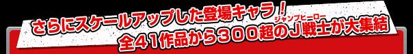 | 誰もが知る名作から最新の人気作まで、「週刊少年ジャンプ」の豪華メンバーが参戦する格闘アクション!!最強vs最強の戦いを見逃すな!! |