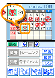 | 【トレーニング】では、日替わりで出される様々なジャンルの問題を解いて、常識力の向上を目指します。「礼儀」、「知恵」、「社会」、「決まり」、「教養」の5つのジャンルから、毎日2つのジャンルのトレーニング用の問題が各ジャンル5題ずつ出題。数日かけて、すべてのジャンルのトレーニングに挑戦したら、今度は【常識力診断】で腕試しです。 |