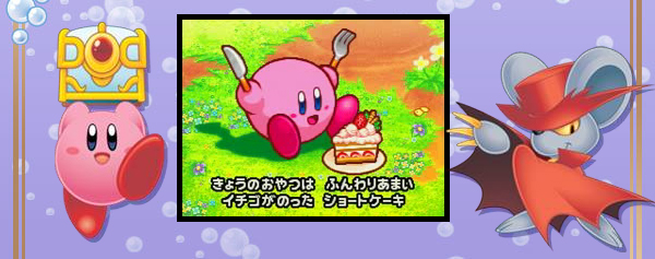 プププランドの住人に恐れられている深い深い穴、「世界のヘソ」。その奥深くには地下世界が広がり、とんでもないお宝が眠っているとか。何者かに盗まれてしまったショートケーキを探すうちに地下世界に落ちてしまったカービィは、宝箱を集めながら先を急ぎます。しかし行く手には、宝箱を狙う謎の盗賊『ドロッチェ団』の影が・・・。迫り来るドロッチェ団とお宝めぐって争奪戦!宝箱を手に入れてゴールをめざそう!