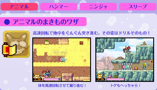 アニマル パラソル カッター ボム ファイター ハンマー ハイジャンプ ファイア バブル ニンジャ エンジェル トルネイド スパーク スロウ スリープ ビーム メタル マジック ソード アイス レーザー ホイール UFO ゴースト アニマル ハンマー ニンジャ スリープ