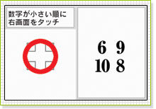 | ディスプレイ画面にある枠に数字が一瞬だけ表示されます。タッチスクリーンに同じ形の枠が表示されるので、数字の小さい順にタッチしてください。 |