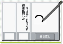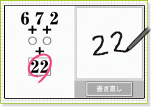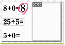 | 簡単な計算問題を速くたくさん解くことが脳を鍛えるトレーニングになります。ディスプレイ画面に計算問題が表示されます。タッチスクリーンの枠内にタッチペンで答えをできるだけ速く記入してください。20問解き終えたタイムを記録します。 |