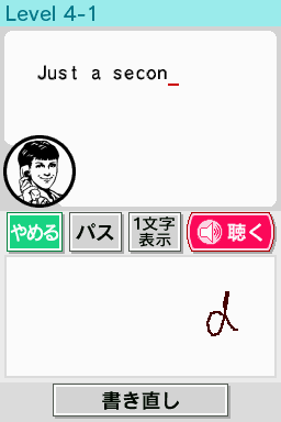 | ▲ディクテーションの問題が順に出題されます。60秒の時間制限に注意しながら、聴き直しや書き直しをせず、速く正解すると高評価に。 | ▲会話文を聴いたあとに、会話の内容についての質問が英語で出題されます。 | ▲全問終了後、判定結果を10段階のランクで表示。これまでの推移もグラフで確認できます。 |