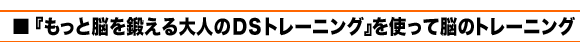 トレーニングは継続することが大切です。この「もっと脳を鍛える大人のDSトレーニング」では、漢字の書取や簡単な計算を基本とした脳に最適なトレーニングを毎日楽しく続けられるように作られています。トレーニングを行う時間は脳が最も活発に働く午前中が最適です。一日ほんの数分だけ、通勤や通学中、少し空いた時間でできるだけ続けてトレーニングを行いましょう。