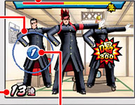 下画面に表示されるマーカーを、流れる音楽にあわせてタイミングよくタッチして、気合値を増やしていきます。応援の結果によって、上画面のストーリーが変化していきます。