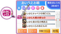 | キーワードを入力して、関連するレシピを探すことができます。手書き入力、携帯電話型入力に対応。 「にくじゃが」「ぴりから」など、特定のイメージでレシピをすばやく探したいときに活躍します。 |