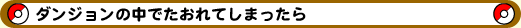 | ダンジョンの途中で倒れてしまうと、どうぐやお金を失い、ダンジョンの入り口まで戻されます。ただし、他の「ポケモン不思議のダンジョン」ソフトと通信したりパスワードを利用することで他のソフトの救助隊に救助してもらうことができます。救助してもらうと、ダンジョン内で倒れる前の状態に戻ることができます。 |