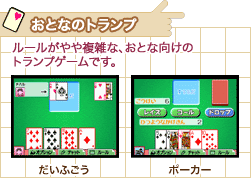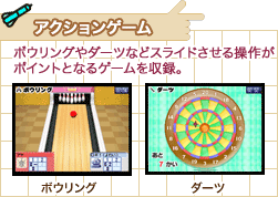 「トランプ」や「将棋」などのテーブルゲームや「ダーツ」「ボウリング」といったニンテンドーDSのタッチ操作で実現したバラエティゲームなど、定番ゲームを40種類以上収録。