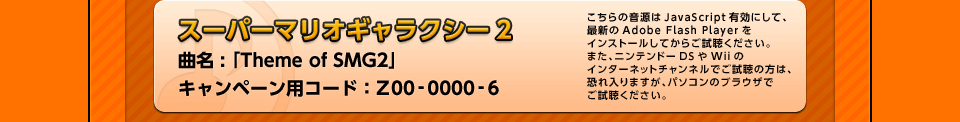 「スーパーマリオギャラクシー2」 曲名 : 「Theme of SMG2」 キャンペーン用コード:Z00-0000-6