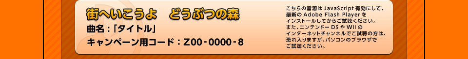 「街へいこうよ どうぶつの森」 曲名 : 「タイトル」キャンペーン用コード:Z00-0000-8