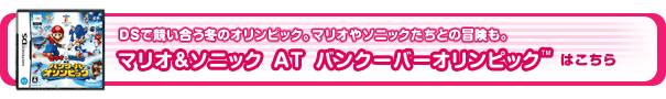 TM IOC. Copyright © 2008 International Olympic Committee ("IOC"). All rights reserved. This video game is the property of the IOC and may not be copied, republished, stored in a retrieval system or otherwise reproduced or transmitted, in whole or in part, in any form or by any means whatsoever, without the prior written consent of the IOC. SUPER MARIO characters © NINTENDO. NINTENDO DS・ニンテンドーDSは任天堂の登録商標です。SONIC THE HEDGEHOG characters © SEGA. All Rights Reserved. SEGA, the SEGA logo and Sonic The Hedgehog are either registered trademarks or trademarks of SEGA Corporation.