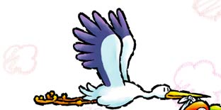 夜明け前の暗い空を、一羽のコウノトリが大慌てですっ飛んでいきます。そのクチバシに今日生まれる双子の赤ちゃんをしっかりくわえて、パパとママのところへ急ぐ急ぐ!